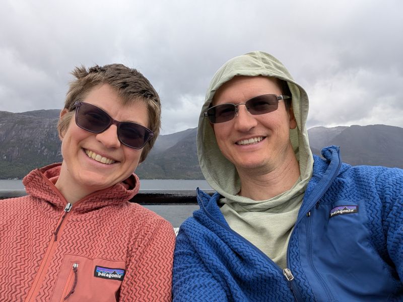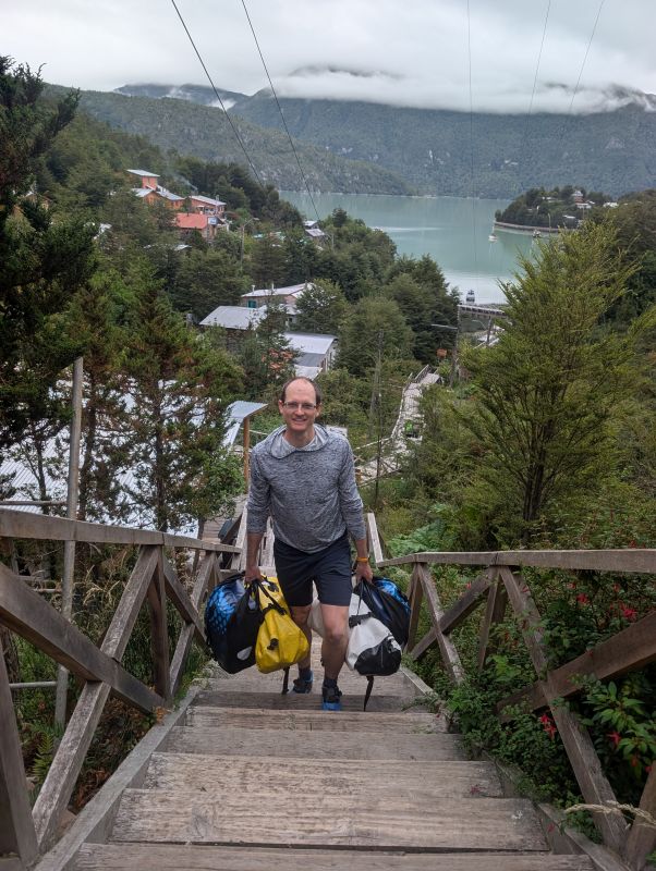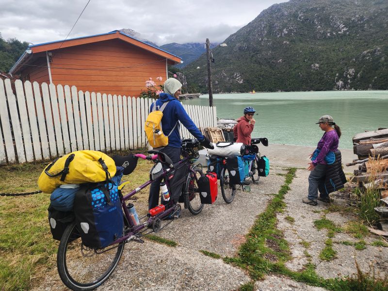 We arrived at our destination, Caleta Tortel, the following morning. The tailwind and a couple shortcuts had cut our delay from 10 hours to 2! Best of all, we were met at the dock by some new friends. Jenny and Curtis read our blog eleven years ago and happened to be on cycle tour and actually in Caleta Tortel at the same time as us! It was such a delight to spend the morning with them, swapping tales and hearing about their adventures. I hope we can see them again either further down the road or back in the US when we are all resting between cycling trips.