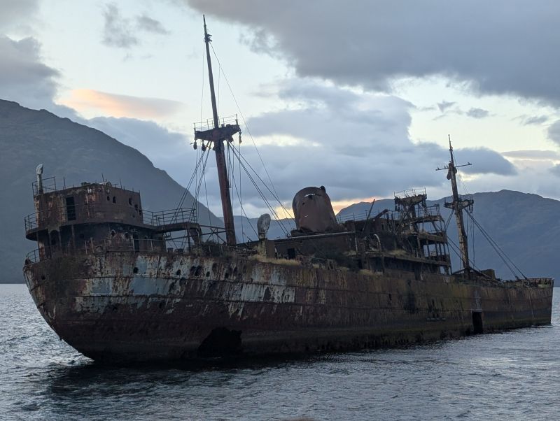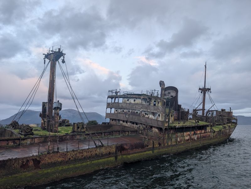 The second exciting thing was later that evening when we passed a shipwreck! The boat had been deliberately stranded there in 1968 when the captain tried to commit insurance fraud. Instead of sinking it was stranded. The crew were all rescued, the fraud was found out, and the boat has been there ever since. It has trees growing on it and birds nesting in it. It was an incredible sight!
