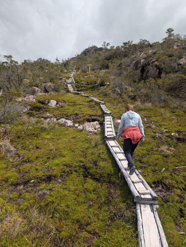 We laughed at how narrow this “boardwalk” was, but then missed it when it was gone and our feet were sinking into the bog!