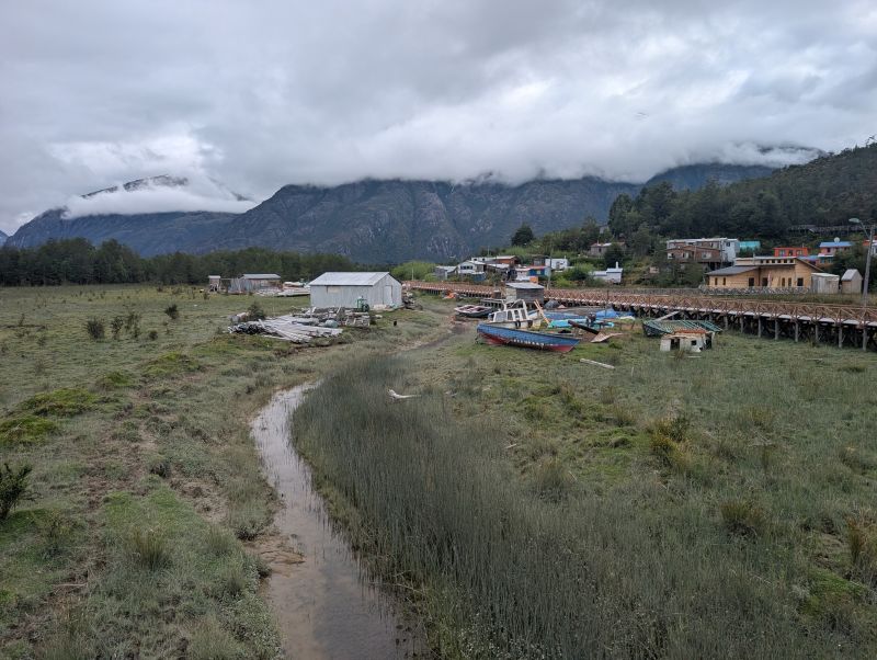 The town of Caleta Tortel is unique. Boardwalks connect everything, with no cars allowed. Originally I assumed this was due to the steep terrain and the historical isolation. It was accessible only by ferry until 2003. Then Jason and I took a hike above town and found out for ourselves that the entire area is a bog! The ground was just completely saturated, even at the top of a nearby mountain.