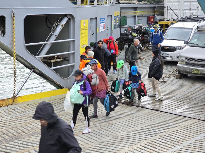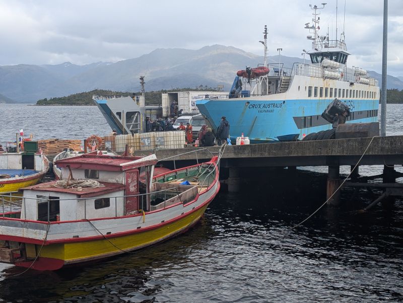 Our long string of rest days is finally over! We are back riding – much to everyone’s relief. We will get to the riding days later. First we have to share what it was like to spend 58 hours on the ferry from Puerto Natales to Caleta Tortel. This ferry is run by the Chilean government to keep the villages of Puerto Eden and Caleta Tortel supplied, and to make it possible for cars to connect from the Carretera Austral to the southernmost provinces of the country. All of the road routes require crossing into Argentina.