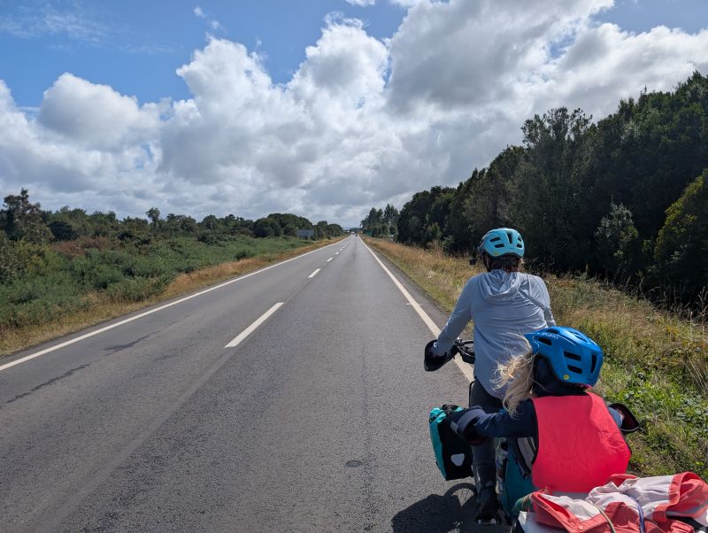 After the ferry we stopped for lunch on the side of the road, which ended in quite a fiasco. A small bug flew close to H’s hand and she reacted in surprise (and fear) by throwing her half-eaten sandwich to the ground. She immediately felt bad about it. Then, A decided a bug had also flown near her half-eaten sandwich and therefore she couldn’t eat any more. How frustrating! Our solution was to get back on the bikes and pump out our annoyance into the pedals. It’s not always fun times on a bike tour, but there are lessons to be learned from it all. This time the lesson was: if you’re hungry don’t throw your sandwich on the ground.