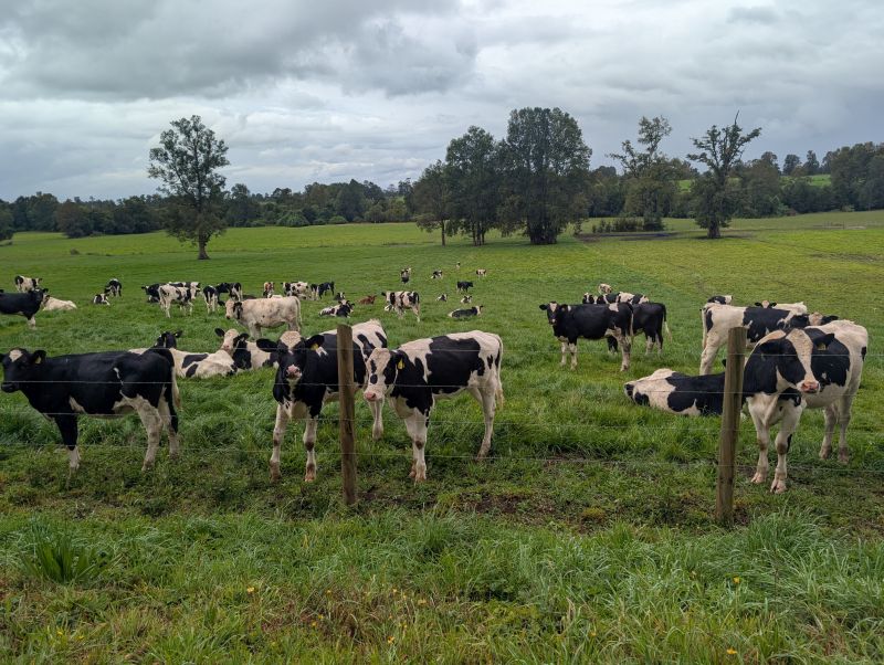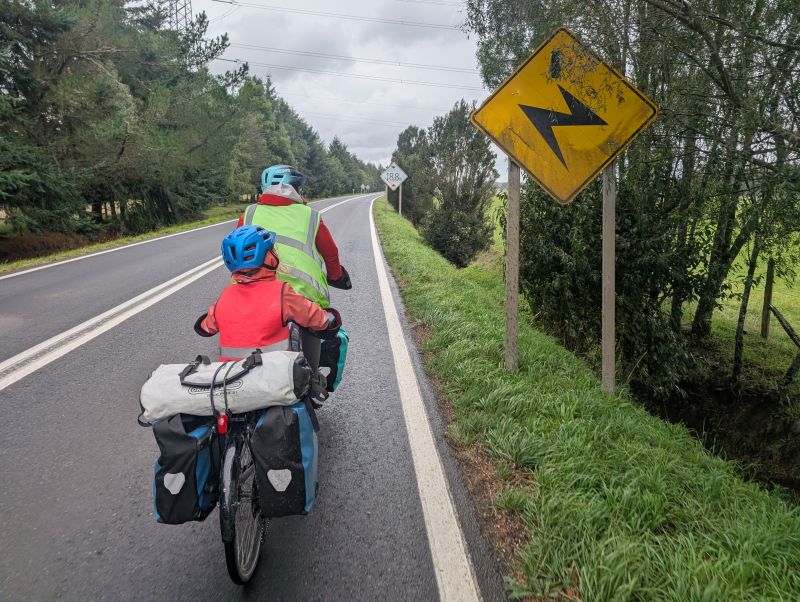 The ride was relatively short. We passed more rich agricultural land and wind turbines. The sun even came out in the afternoon. The big event was the road closure A mentioned where workers were scooping up mud to clear the road. Daisy talked to a motorist as we waited. He told us that the landslide blocking the road had been caused by a retaining pond on a dairy farm up the hill. Apparently he used to work there and had warned the owner about the danger of landslides. The owner later leased the land to another person and… well the pond overflowed and this was the second time! The guy telling the story was musing about how big the fine was going to be.