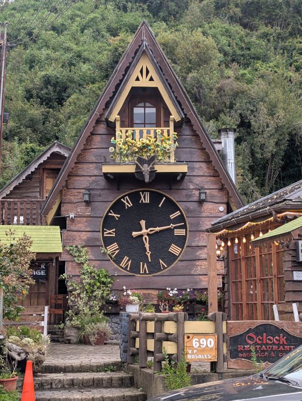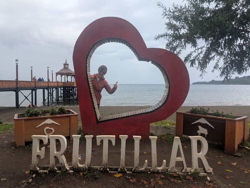 One of the reasons I wanted to come here is because across the lake are two amazing volcanoes: Osorno and Calbuco. I thought the girls would be wowed by seeing them. However, all you can see is clouds. I still enjoyed taking my “volcano picture” anyway!