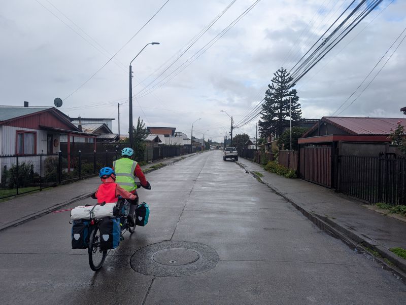 Of course the rain caught us as we finished out the rolling hills towards the agricultural hub of Los Muermos. This is not a tourist town, so it was a bit of a challenge to find an indoor place to stay. We rented an apartment that is typically used by Chileans traveling for work. The owner said he had a tandem bicycle too! I was shocked, since we haven’t seen any tandems yet here in Chile. He suggested that they are more common further north, but we’ll believe it when we see it.