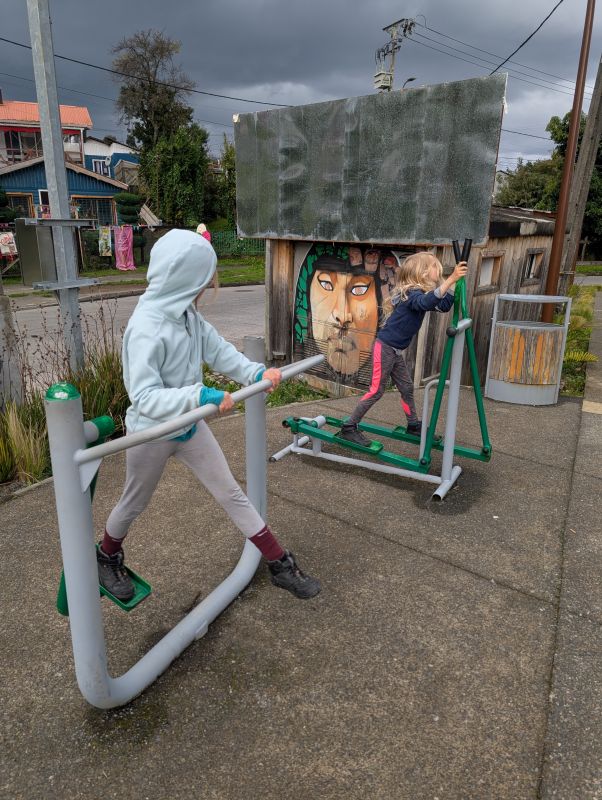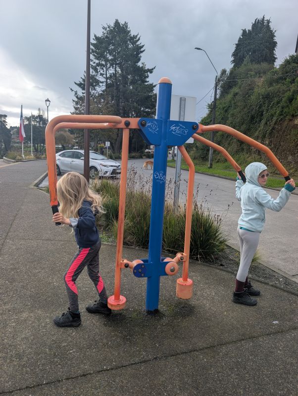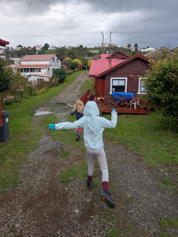 Something interesting (and convenient) about Chile is that in these towns there are a lot of minimarkets. So many, in fact, that there is usually a minimarket next to or across the street from the large supermarket. We appreciate the convenience when it’s literally raining buckets. Since we were staying another night, our host brought us a mini-fridge to use – from another apartment, after his other guests checked out, of course, ha! We huddled around the wood stove for warmth most of the day, but ventured out to run a few errands. Daisy needed to replace her safety vest and we sought out an HDMI cable so we can hook our laptop up to the TV. It was a pretty boring day, but the kids enjoyed the rest.