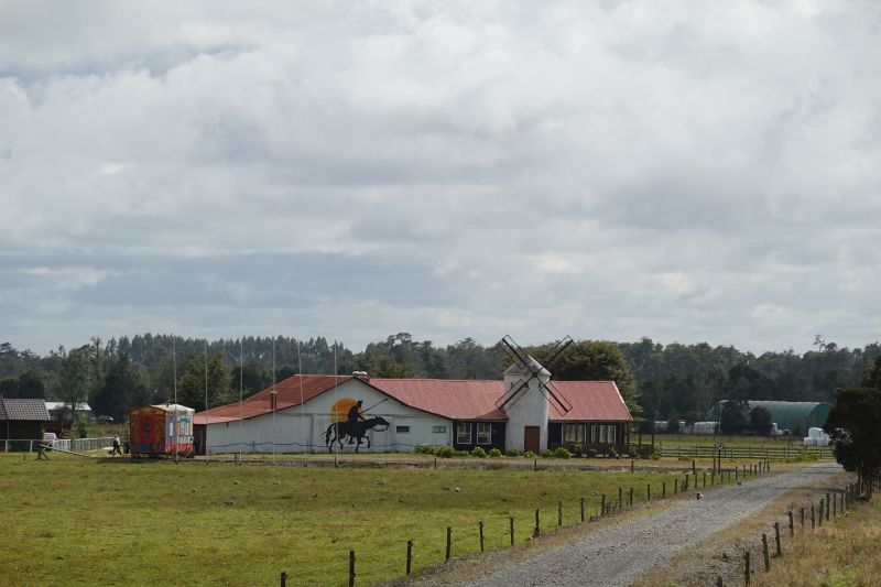 Los Muermos is situtated on a hill, so for the first part of the day we descended through undulating farmland. In the far distance were wind turbines. This usually implies we are headed for headwind.