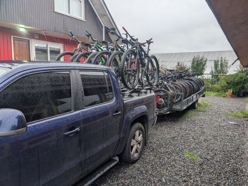 After a days-long ride with no rain we rolled into Entre Lagos. The rain started when we were just a couple blocks from our apartment. That was also when we started to see a bunch of other cyclists! They even cheered us as we passed by, which was a bit surreal. In total, we counted 30 bicycles and have determined that a tour group is staying here in the other buildings.