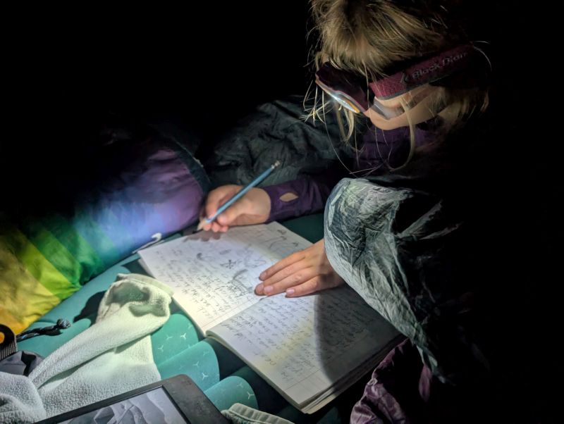 Memories to last 10 lifetimes at least! Wonderful photos. Can’t pick a favorite but Journaling with headlamp is right up there!