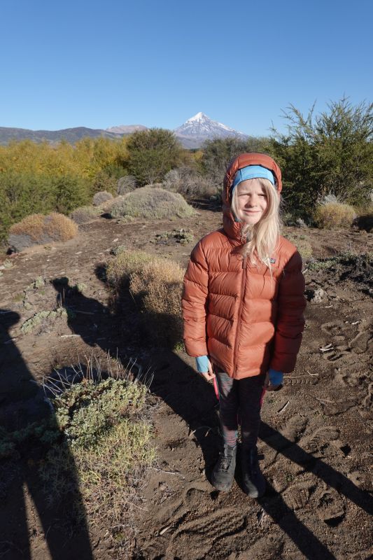 The ride from Junín to the Chilean border climbs up only about a thousand feet over 40 miles, so the ascent is gradual through a huge open landscape in the shadow of the looming volcano.  For visa reasons, we needed to dilly dally in this section for two nights.  The campground we had planned for was inexplicably closed, so we carried on through the beautiful valley looking for a free place to camp.