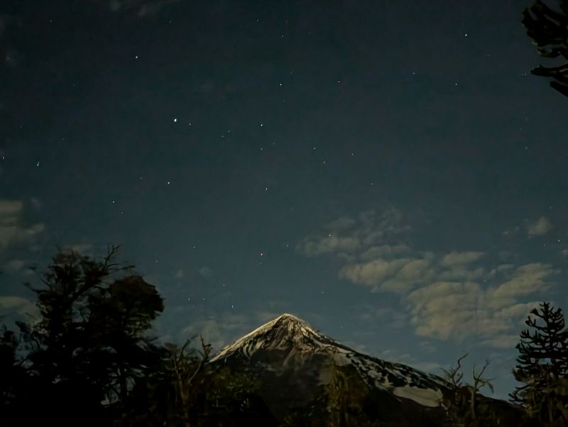We stopped for the night at a campground right at the base of the volcano and extremely near the top of the pass.  It was unbelievably picturesque.  The clouds blew in overnight and were gorgeous in the light of the full moon, and in the early morning I saw a pink cloud resting atop the volcano.  The pictures just don’t do it justice.