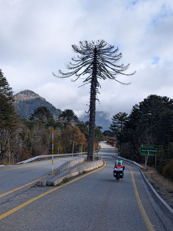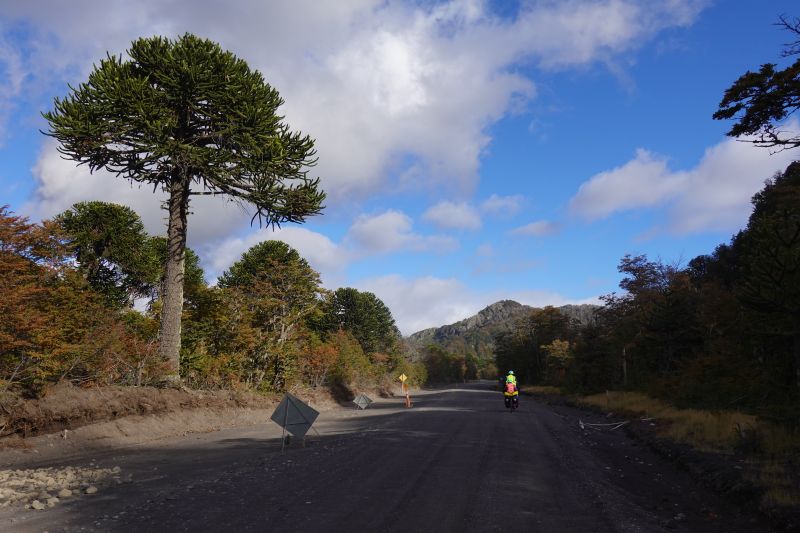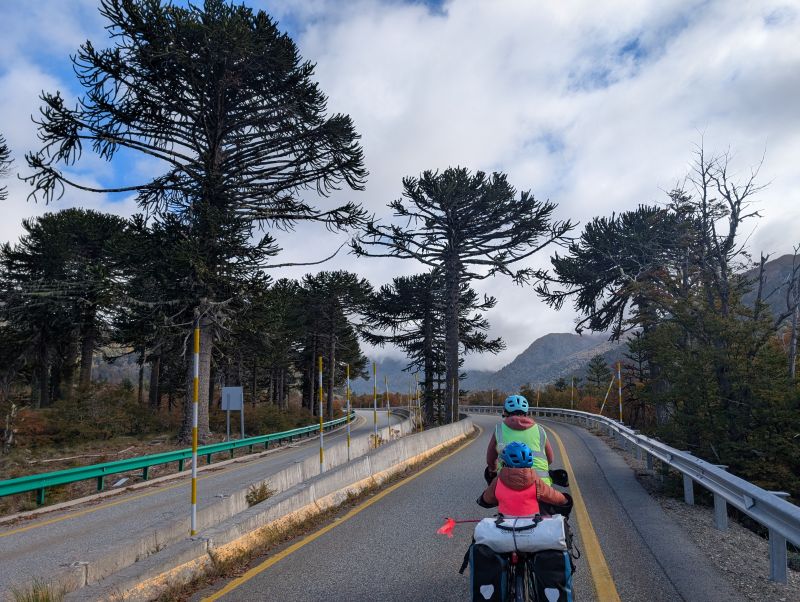 We entered a forest of Araucaria (monkey puzzle) trees.  These are the national trees of Chile and extremely distinctive.  It is a magical feeling to ride through them in the Andes.  As we slowly made our way through the forest a dump truck driver stopped and waved us over.  He gave us lunch!  It was incredibly generous and honestly we were extremely excited to eat some fresh food.  We immediately stopped and ate the entire thing, waving wildly in thanks as he drove off.