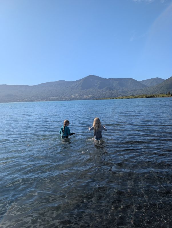 There are lots of options for camping in this region, including designated free camping areas, but for whatever reason the girls had their hearts set on a campsite by a lovely lake that had real bathrooms and picnic tables.  It was absurdly expensive for a campsite in Argentina (about $50 USD) but they insisted and we went with it.