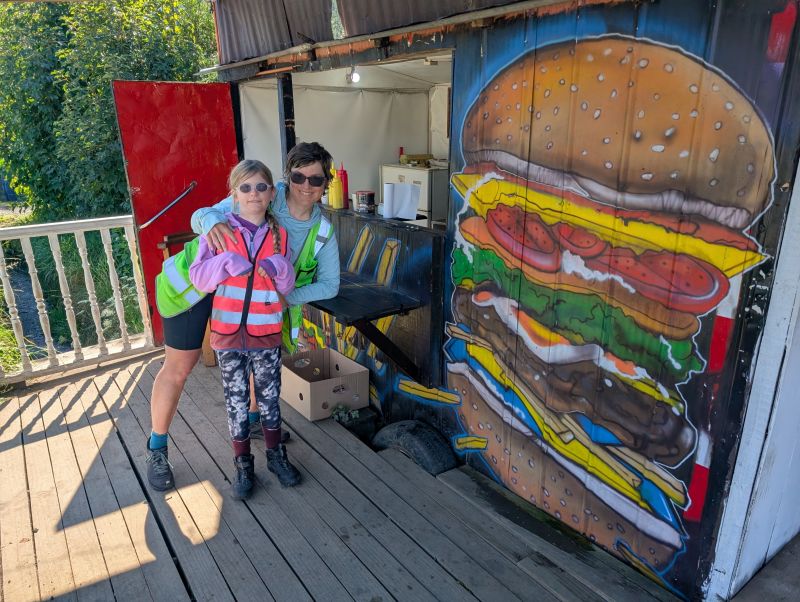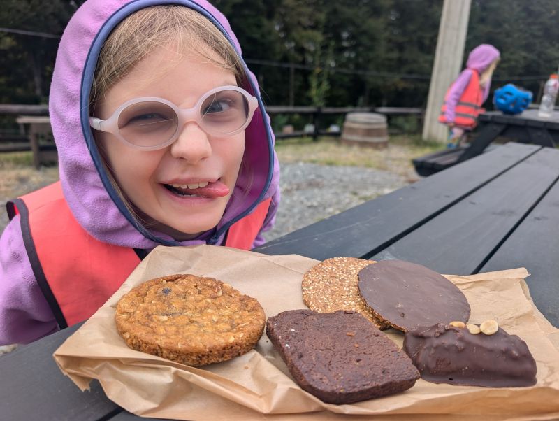 The road had steep up and downs, so despite the quiet road conditions we started to feel a little downtrodden and tired. Like magic, a grocery store appeared at the top of a particularly big hill. It wasn’t a typical grocery store though – it was a local co-op full of fresh vegetables, sourdough bread, lattes, and American-style oatmeal cookies and brownies. In short, it was just about fabulous.